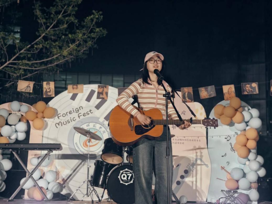 语言魅力展风采,经典歌曲有深度。一首由柏石乐队带来的歌曲串烧拉开本次外文经典歌友会的序幕。随后各学院同学纷纷登台献艺,一首首悠扬舒缓、节奏律动的英语、日语、韩语、德语歌曲,将现场氛围推向高潮,展现出当代青年学子的青春风采。在路演环节,观众的热情参与更是将现场氛围推向高潮,大家在荧光棒的挥舞下,感受语言与声音的魅力碰撞。最后外文经典歌友会在观众们的掌声与欢呼声中圆满落下帷幕。