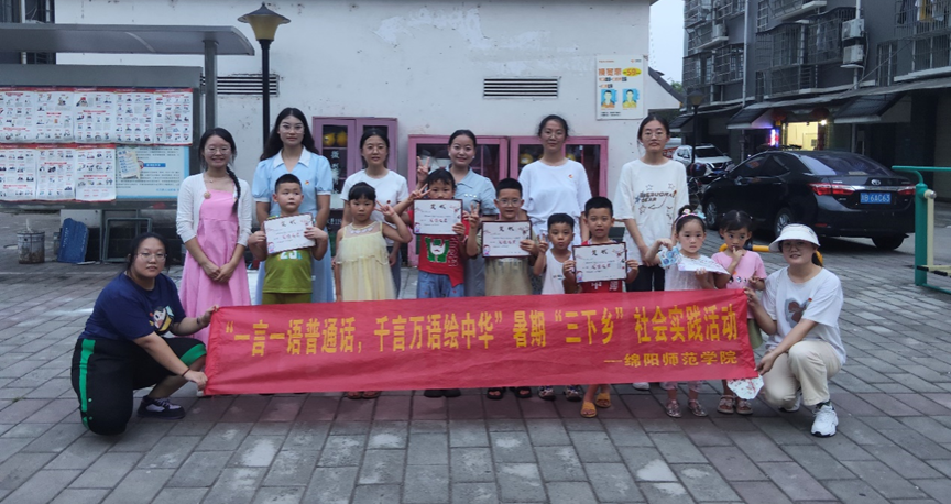 为深入贯彻落实党的二十大关于“加大国家通用语言文字推广力度”的决策部署,贯彻落实习近平总书记关于语言文字的重要指示批示精神,传承发扬中华优秀传统文化,推动青少年阅读行动,7月10日至7月12日,马克思主义学院暑期“三下乡”社会实践团队—“推普小部队”一行前往绵阳市涪城区永兴镇飞云社区开展以“一言一行普通话 千言万语绘中华”为主题的社会实践活动。