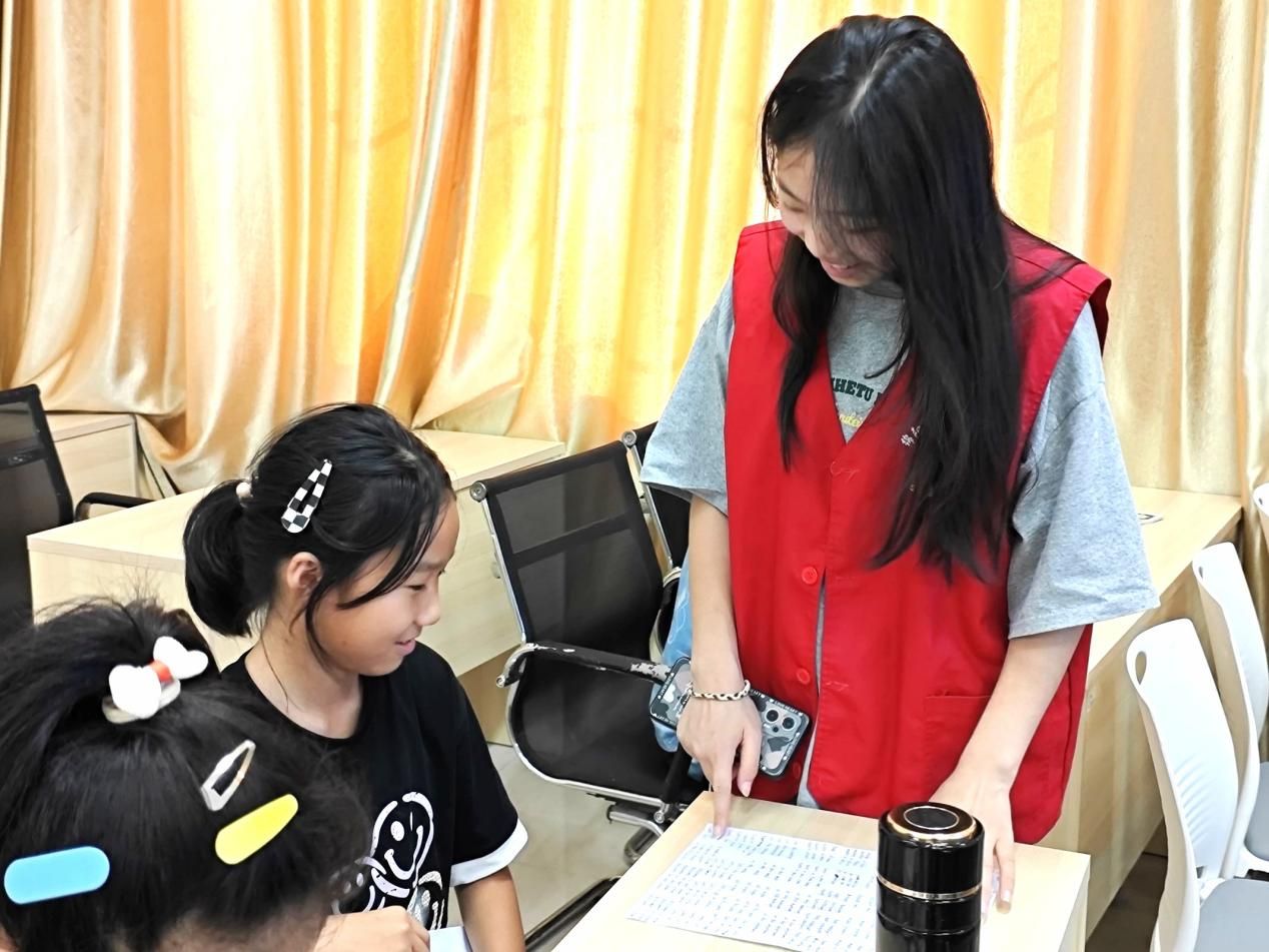 为进一步夯实推普效果,团队采取“1+N”精准辅导模式,充分发挥教科学子的专业优势,在课业辅导的同时将普通话融入孩子的日常生活,随时引导孩子正确发音,不断纠正发音错误,提高孩子的普通话水平。